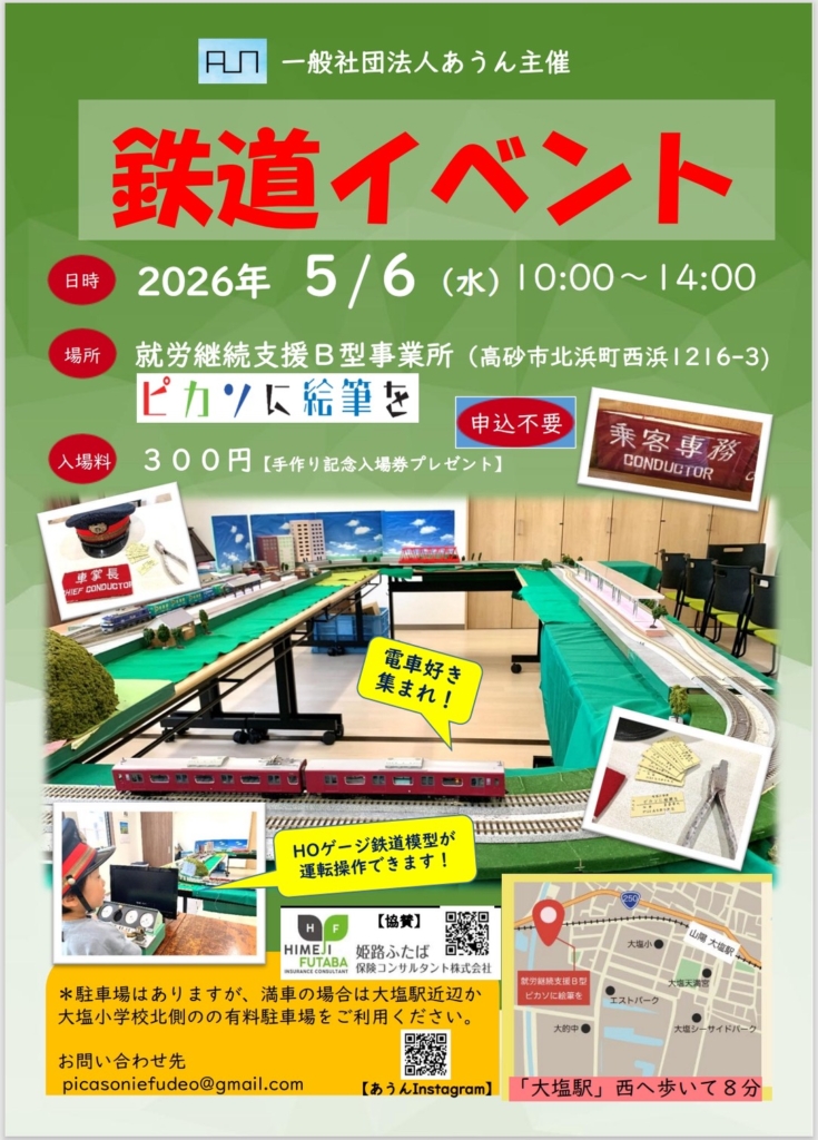 - 場所: 就労継続支援B型事業所 ピカソに絵筆を(高砂市北浜町西浜1216-3)(「大塩駅」西へ歩いて8分)